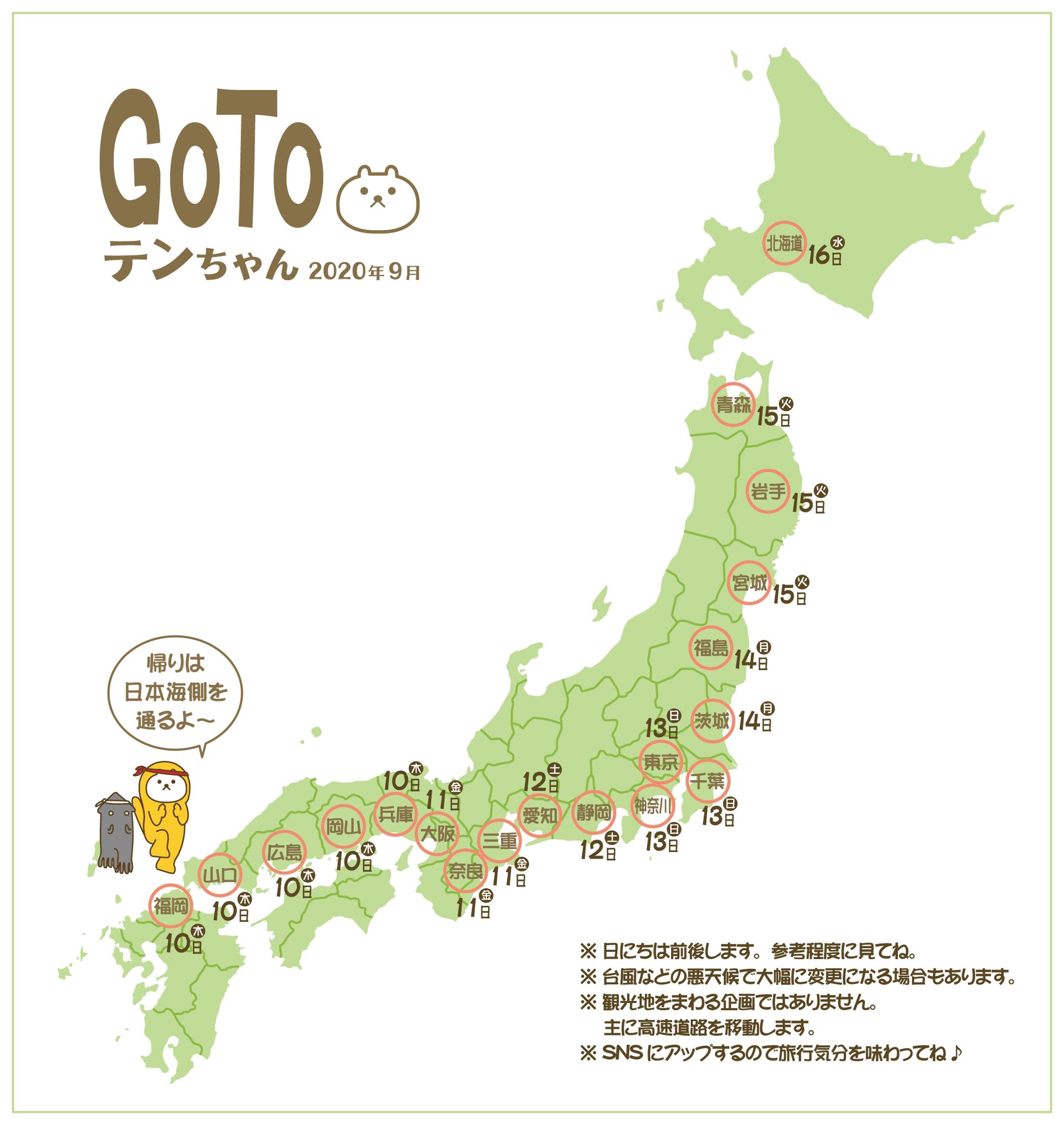 軽自動車に着ぐるみを乗せて全国を回り、旅先で出会った人に写真を撮ってもらってSNSで発信する「GoToテンちゃん」を企画しました。