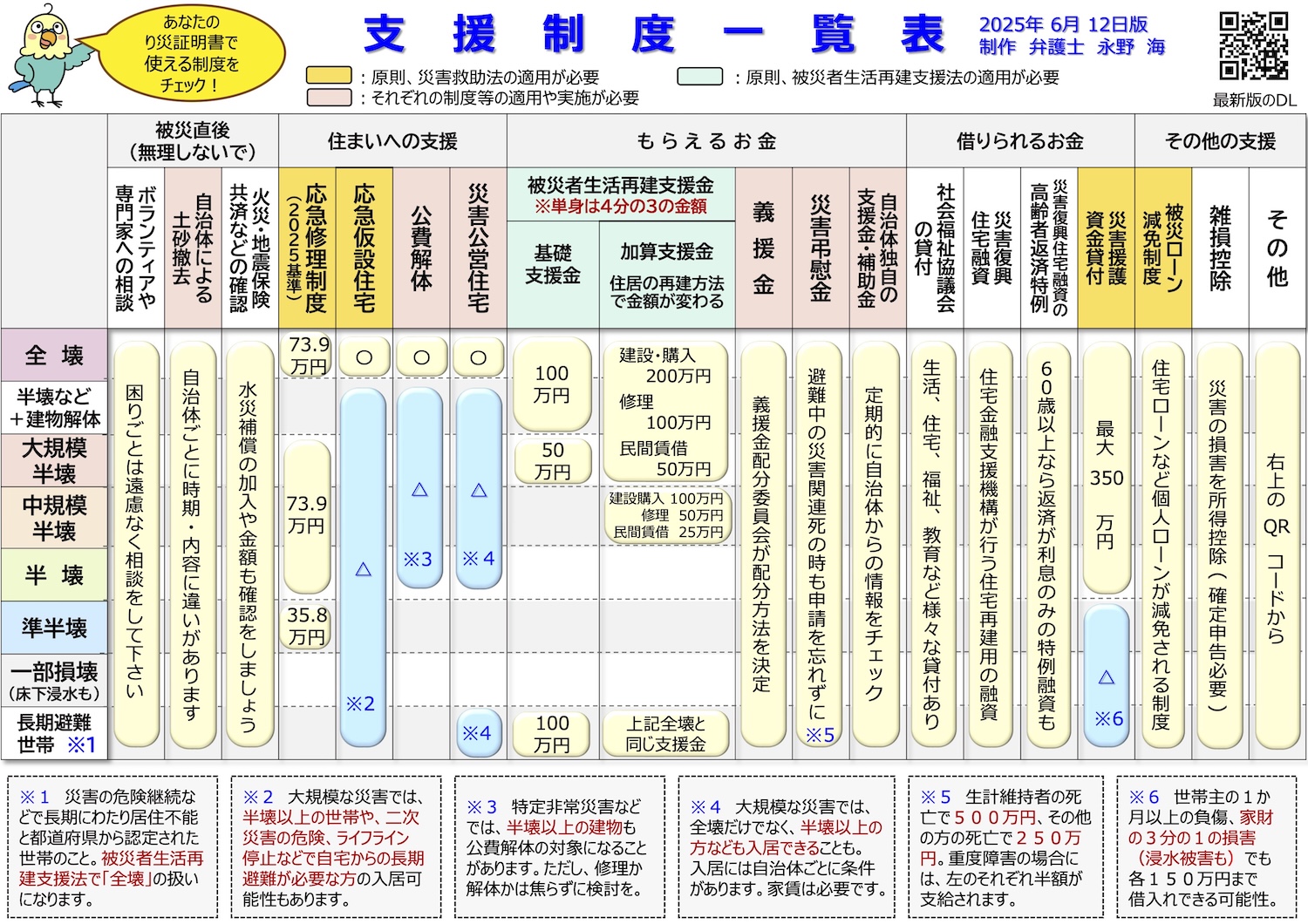 また、り災証明書で使える制度をチェックできる一覧表も紹介されました。