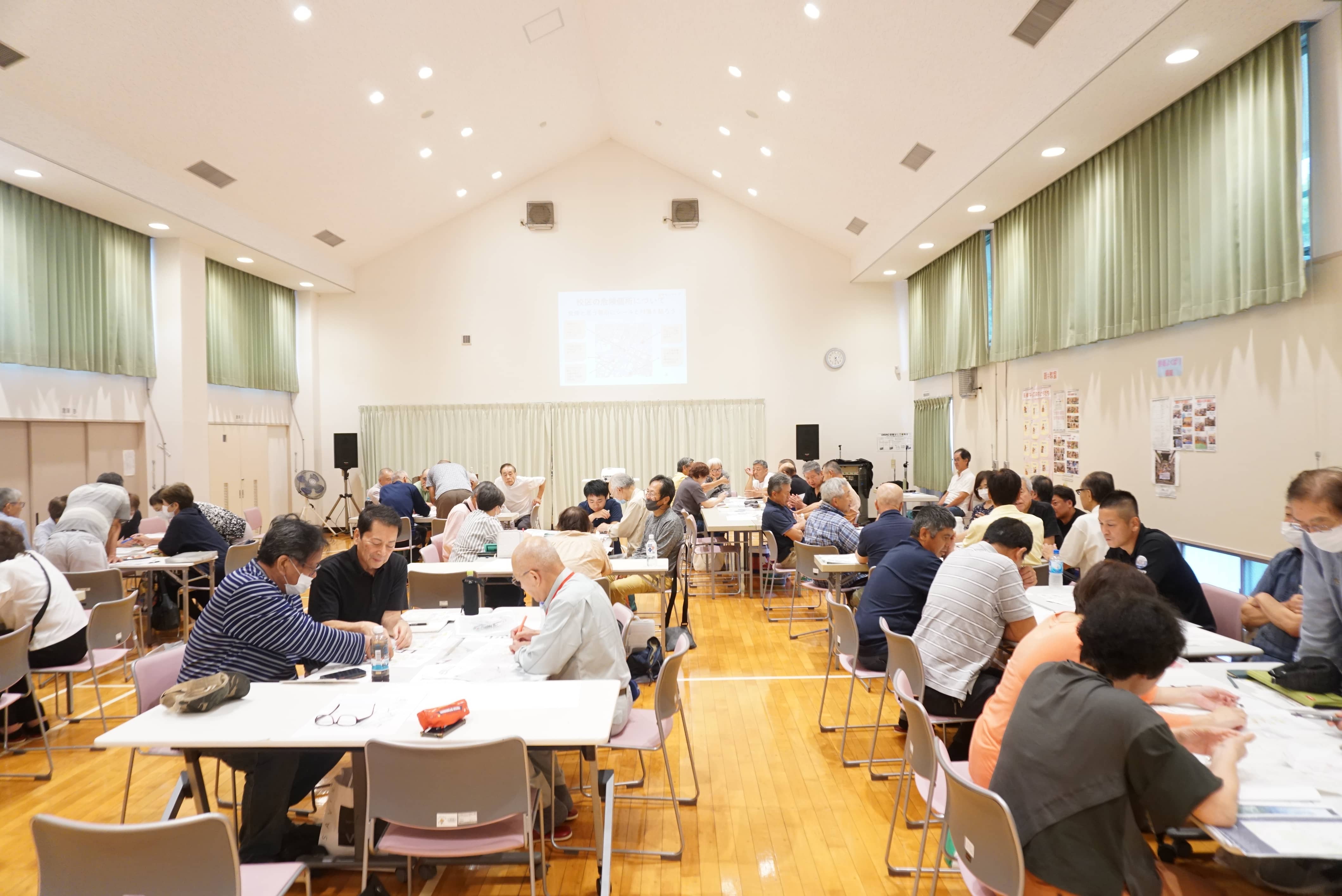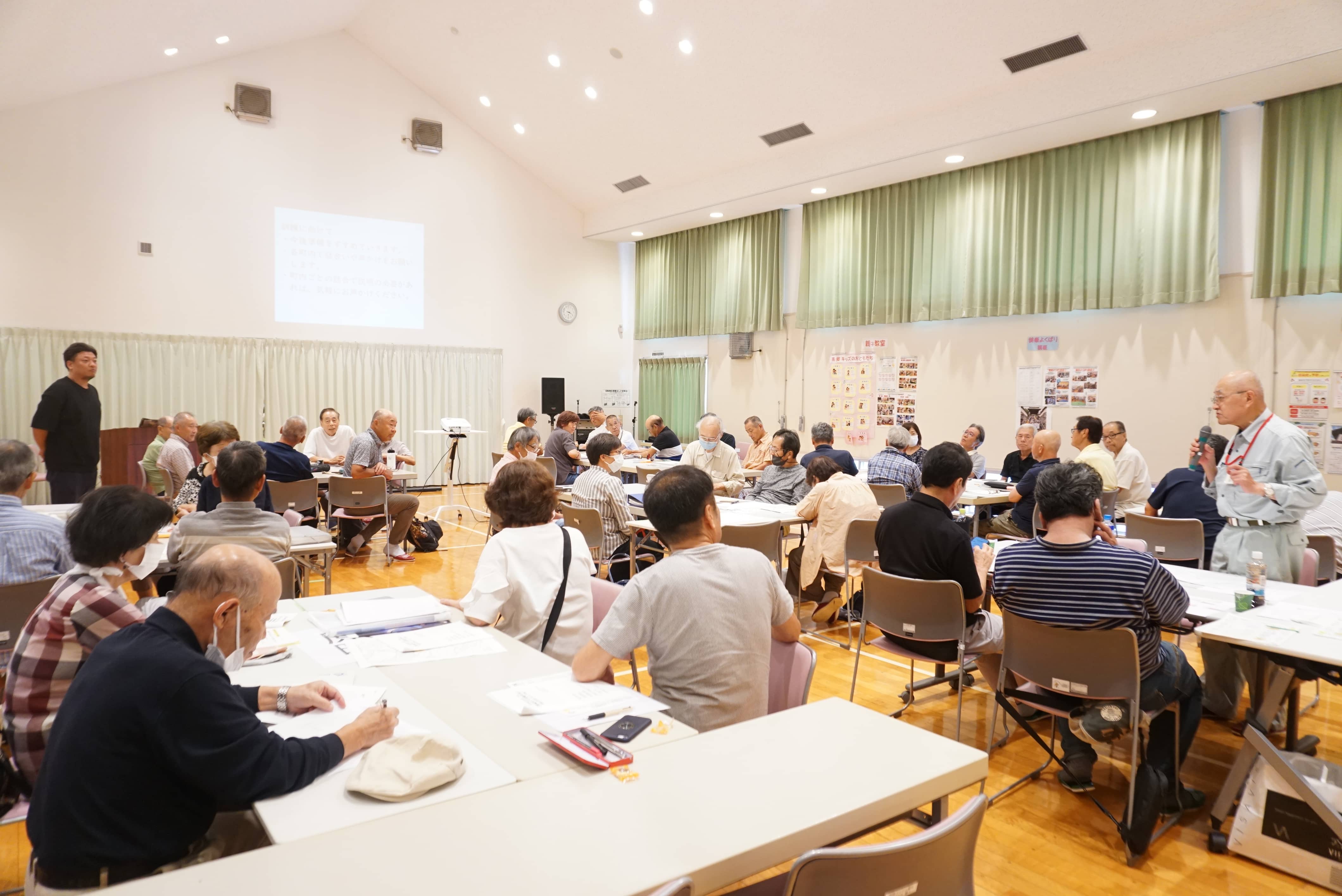 9月28日(日)、南郷地区コミュニティ・センターで「南郷地区防災会議」の第2回目が開催され、自治会役員など50名ほどが参加しました。